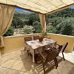 Oak & Olive Filoti Village, Naxos Island Center heeft uitzicht over tuinzichten en bestaat uit een patio, een balkon en een zitruimte met airconditioning. Het interieur heeft een bank, evenals een open haard. Een badkamer, die over een apart toilet en een badkuip beschikt, is ook van een haardroger en handdoeken voorzien.